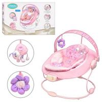 Детский шезлонг - качалка Bambi 60681-1 виброблок мелодии дуга с игрушками (розовый)