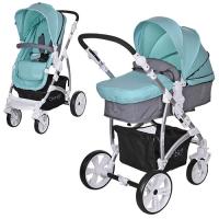 Коляска для детей M 3407-15 универсальная с амортизаторами (серо-мятная)