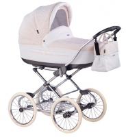 Коляска 2 в 1 Классическая Roan Marita (12", Графит) S59 Светлый Капучино Холодный(Белые Цветочки)-Белая Кожа 10467