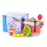 Все составляющие набора сделаны из яркого пластика. Ваш малыш сможет выучить название каждого инструмента. Такой набор обязательно развеселит маленького непоседу. Малыш сможет придумать большое количество интересных игр со своим новым комплектом. Стоит отметить, что игрушечный барабан продается в комплекте с палочками и малыш сможет почувствовать себя настоящим барабанщиком. Все детали музыкального оркестра воспроизводят определенные звуки, поэтому малыш сможет создать свою уникальную мелодию. При использовании авторского описания товара не забывайте указывать ссылку на первоисточник intertoys.com.ua. Этот игровой набор абсолютно безопасен для ребенка, и поэтому подходит даже самым маленьким малышам.