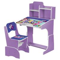 Парта с полочками BambiW 2071-14, регулируемая по высоте (сиреневая Little pony)