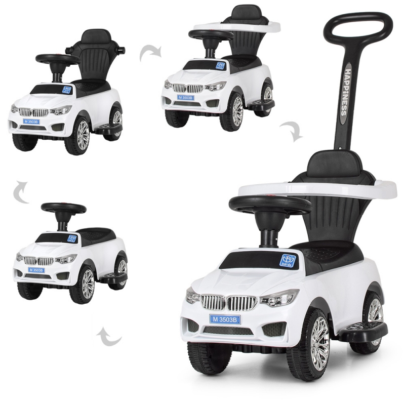 Детская каталка-толокар BMW M 3503B(MP3)-1 с родительской ручкой и MP3 (белая)