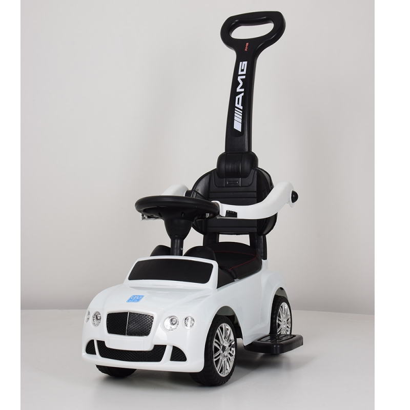 Детская каталка-толокар с родительской ручкой Bentley M 3901L-1 с кожаным сиденьем 2в1 (белая)
