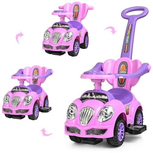 Детская каталка-толокар HZ 558 W-8-9 с родительской ручкой (розово-сиреневый)