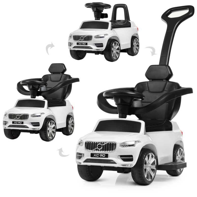 Детская каталка-толокар 2в1 Volvo XC 90 M 4114EL-1 мягкие колеса кожаное сиденье и ручка (белая)