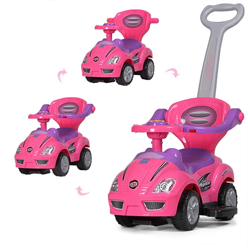 Детская машинка каталка Z 382-9 толокар с родительской ручкой (розово-фиолетовая)