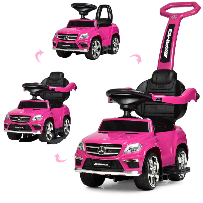 Каталка-толокар для детей 3в1 M 3186L-8-2 с родительской ручкой кожаное сиденье (малиновый)