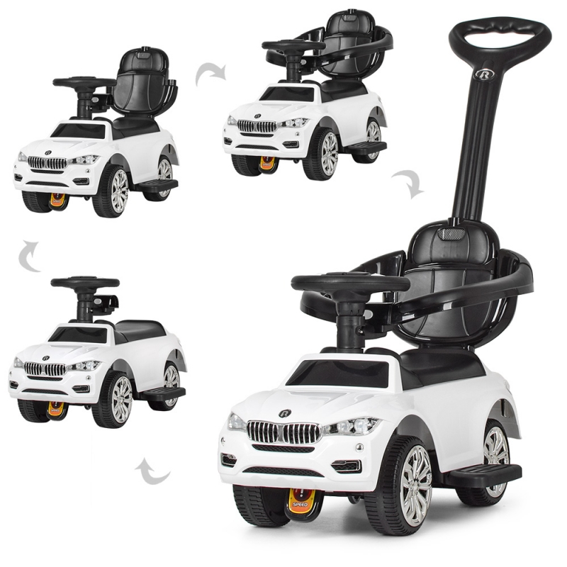 Каталка-толокар для детей BMW 7662-1 с родительской ручкой 2в1 (белая)