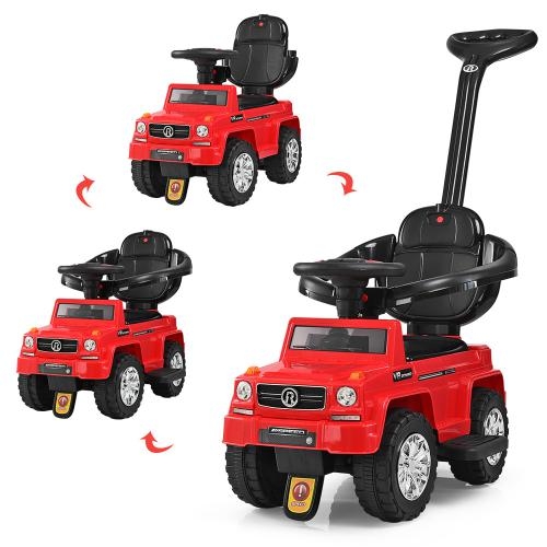 Каталка-толокар для детей 2в1 Mercedes 7666-3 с родительской ручкой (красная)